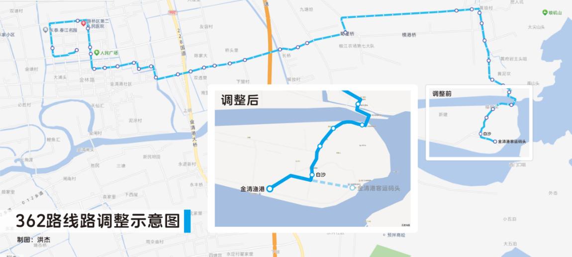 为优化公交线网,方便市民出行,362路计划于2024年8月1日起,由“金清客运中心——金清港客运码头”调整为“金清客运中心——金清渔港”。其他不变。